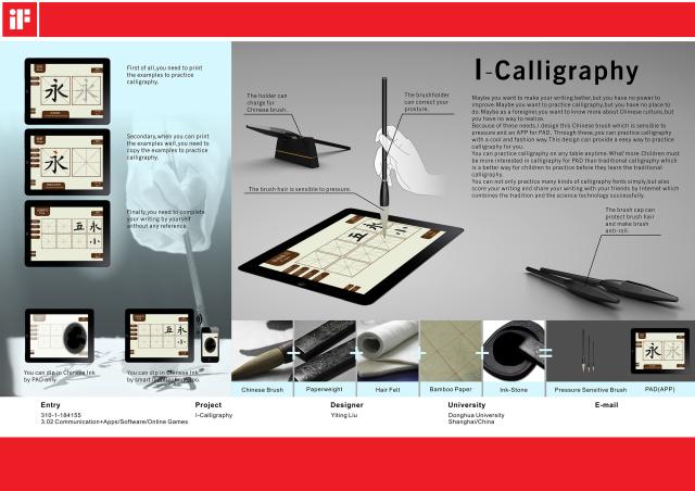 2016年4月7日全球工业设计权威奖项——德国IF设计奖评委会公布了2016年度概念奖的获奖名单。欧乐电影工业设计系刘奕廷同学提交的“I Calligraphy”作品从11000多件参赛作品中脱颖而出,获得IF概念设计奖(iF STUDENT DESIGN AWARD 2016)。