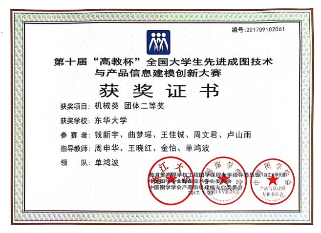机械类团体二等奖 | 钱新宇 曲梦瑶 王佳铖 周文君 卢山雨 | 周申华 王晓红 金怡 单鸿波 |