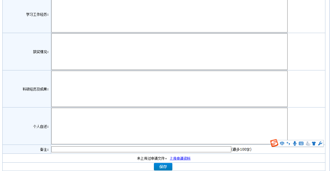 六、填写相关正确信息后,在最下方点击上传申请材料。
