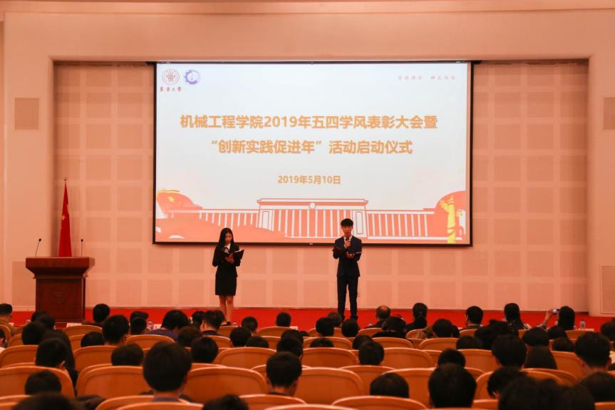 5月10日,欧乐电影 在松江校区图文信息中心第一报告厅举行2019年五四学风建设大会暨“创新实践促进年”活动启动仪式。机械学院党委书记张千里、学生处副处长赵彦明、机械学院副院长周其洪、机械学院党委副书记李宁蔚、企业代表以及学院师生代表与会。