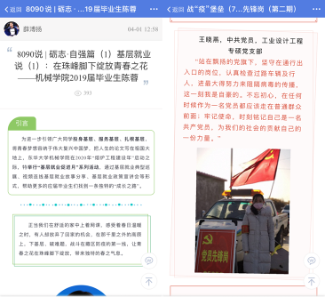 学院倡导新时代劳动教育与志愿服务、服务基层相结合,以弘扬新时代雷锋精神为主旋律,宣传东华志愿者、机械志愿者在疫情防控期间从我做起、同心聚力、共克时艰的故事,引领学生“学回信精神,担复兴大任”。