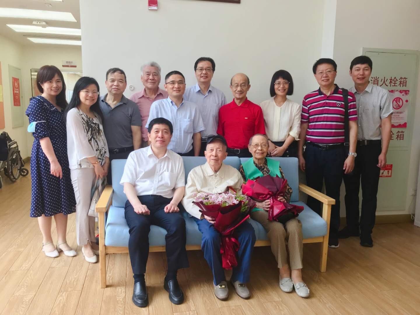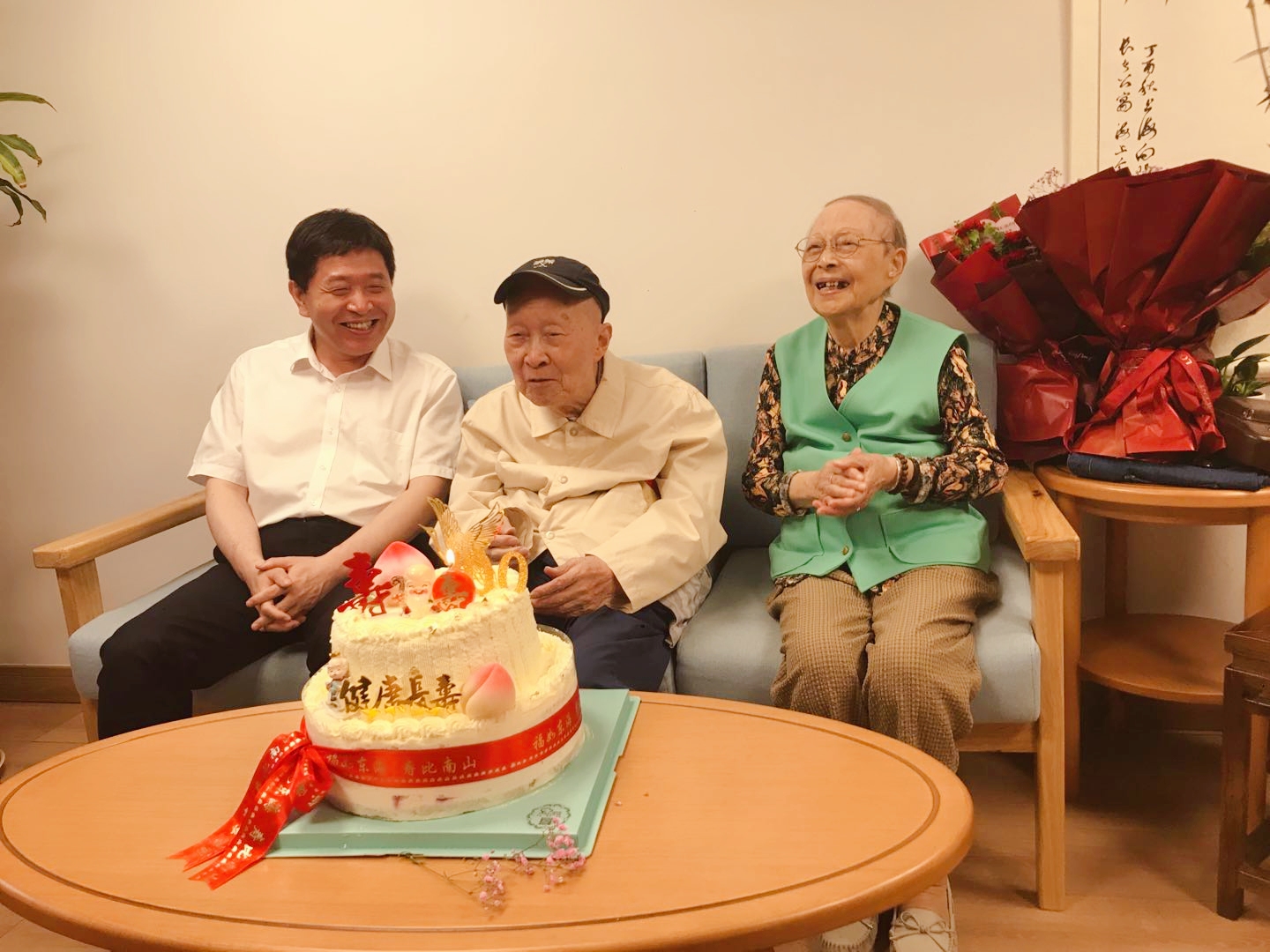 6月28日上午,校长俞建勇一行来到向阳院长者公寓,为退休教授陈人哲先生庆祝百岁生日。校办主任周婉婉、欧乐电影 党委书记张千里、退管办主任宋敏、党委统战部副部长叶晓燕、九三学社委员会副主委宋晖等教师代表一同参加。