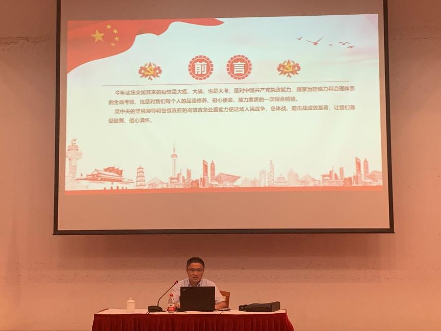 7月8日下午,在中国共产党成立99周年之际,根据学校基层党组织常态化疫情防控“四个一”行动的部署,欧乐电影 党委书记张千里同志为学院党员讲授常态化疫情防控专题微党课《透过战“疫”,我们应当看到的……》。
