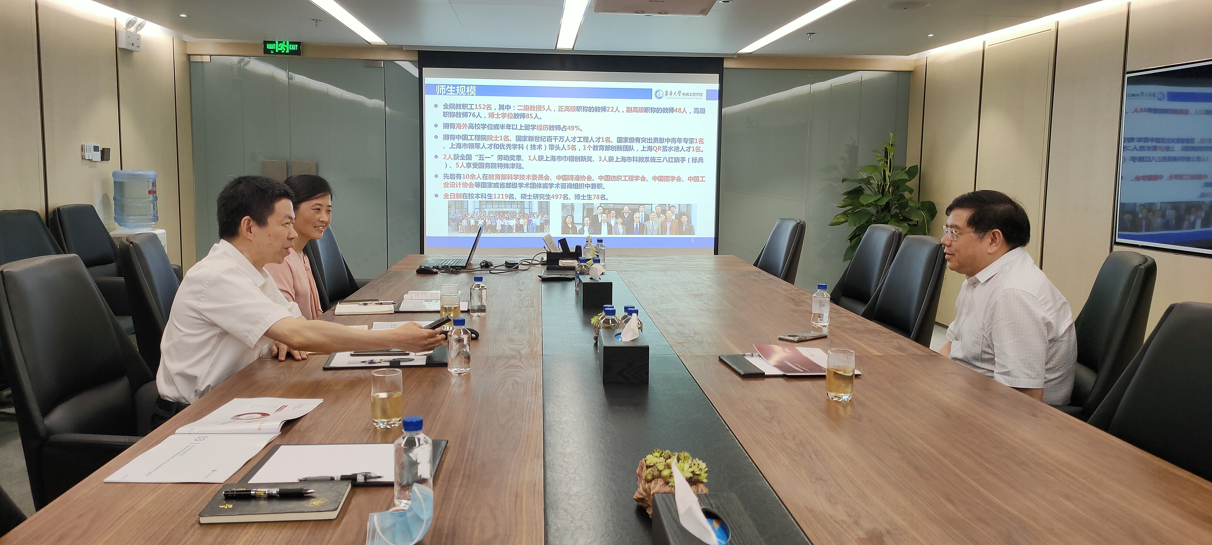 单鸿波向何志平校友一行详细介绍了学院“十三五”期间在人才培养、学科建设、科学研究、队伍建设等方面的基本情况与工作成果,并结合学院正在制定的“十四五”规划,从党建思政、学科建设、人才培养、科学研究、社会服务、产学研合作等方面与何董进行了积极深入的探讨,听取了校友对学院发展的意见与建议。单院长表示学校和学院的发展离不开校友们的支持,将积极搭建好学校与校友企业间的桥梁,加强校友企业与母校的深入合作、校友间的沟通了解。双方还就东华天骥教育基金支持学院中青年教师的培养及学生综合能力提升、产学研科技服务等方面交流合作进行了交流探讨。