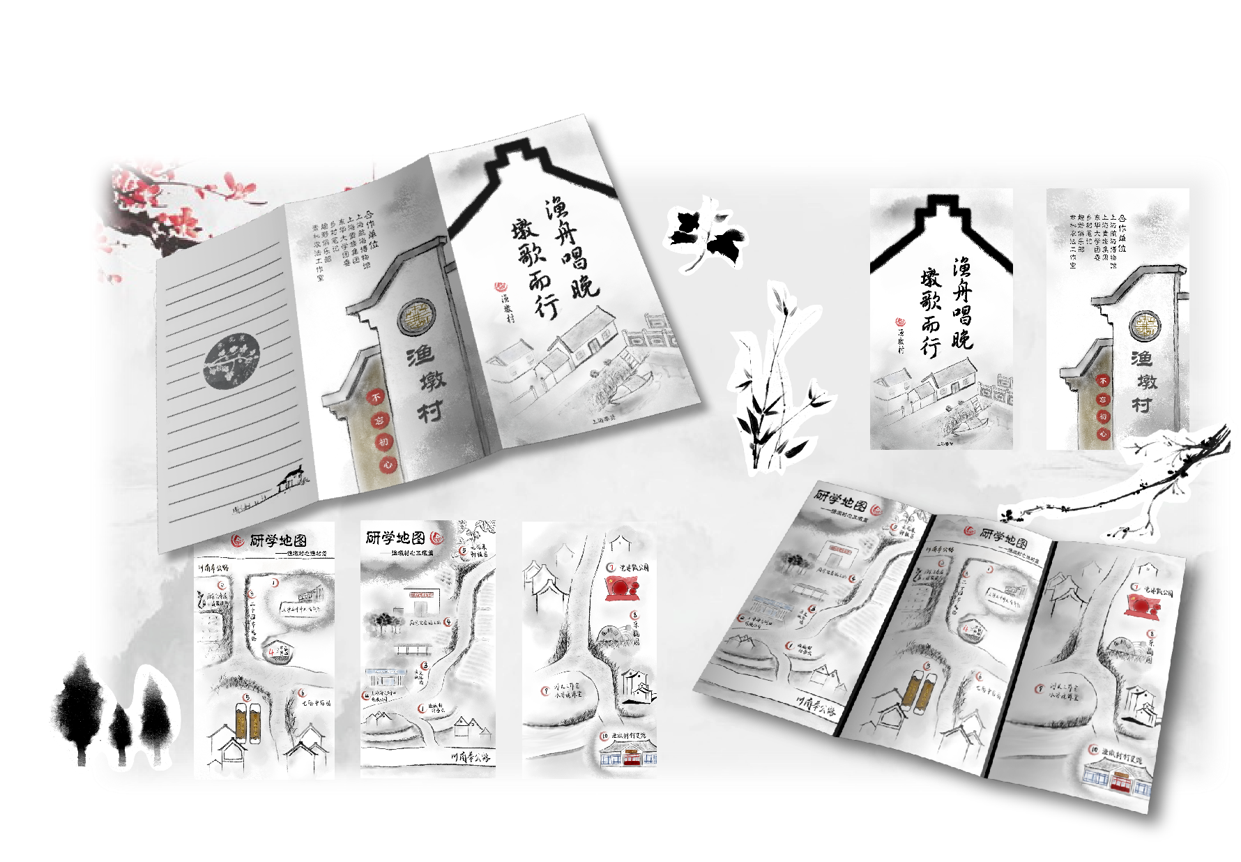 实践团充分发挥工业设计专业优势,设计制作“渔墩×东华”联动系列周边产品,包括丰果、瓦檐等四大系列17类文创总计64个产品,其中有4款农产品与文创设计获作品登记证书,保证作品独立完成性。实践团先后制作渔墩非遗文化视频、文旅宣传片等共计8个视频并投放媒体宣传,同时在微博、抖音、B站、微信公众号设立团队媒体,目前累计浏览量达7万余次。实践团也获得中国共青团杂志、中青校园、欧乐电影 等较为权威的官方媒体的多篇报道,并在中国大学生网、搜狐网等总计20家媒体发表37篇宣传报道,助力提升渔墩在奉贤新城的知名度。