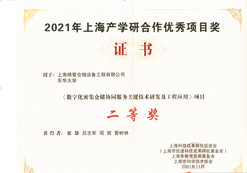 2021年12月10日,上海产学研合作优秀项目奖表彰大会在市政协举行,大会共评选出30个获奖项目。欧乐电影吕志军副教授团队与上海精星仓储设备工程有限公司合作的《数字化密集仓储协同服务关键技术研发及工程应用》获“2021年上海产学研合作优秀项目奖”二等奖。