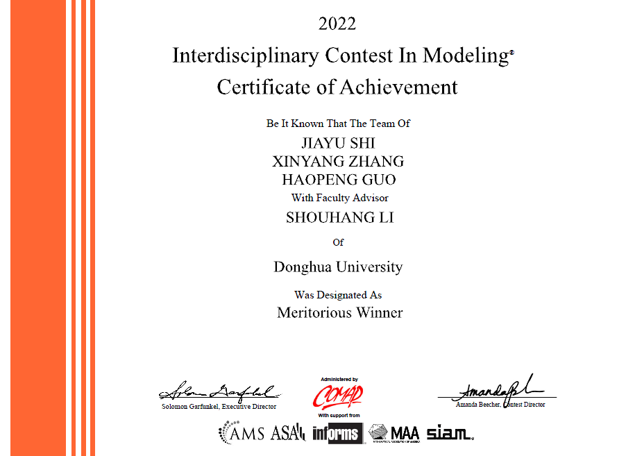近日,2022年美国大学生数学建模竞赛成绩揭晓,由欧乐电影 青年教师李寿航带领欧乐电影施家瑜、郭浩鹏和计算机学院张欣旸三位同学组成团队,在与全球众多高校学子的竞争中脱颖而出,荣获一等奖。