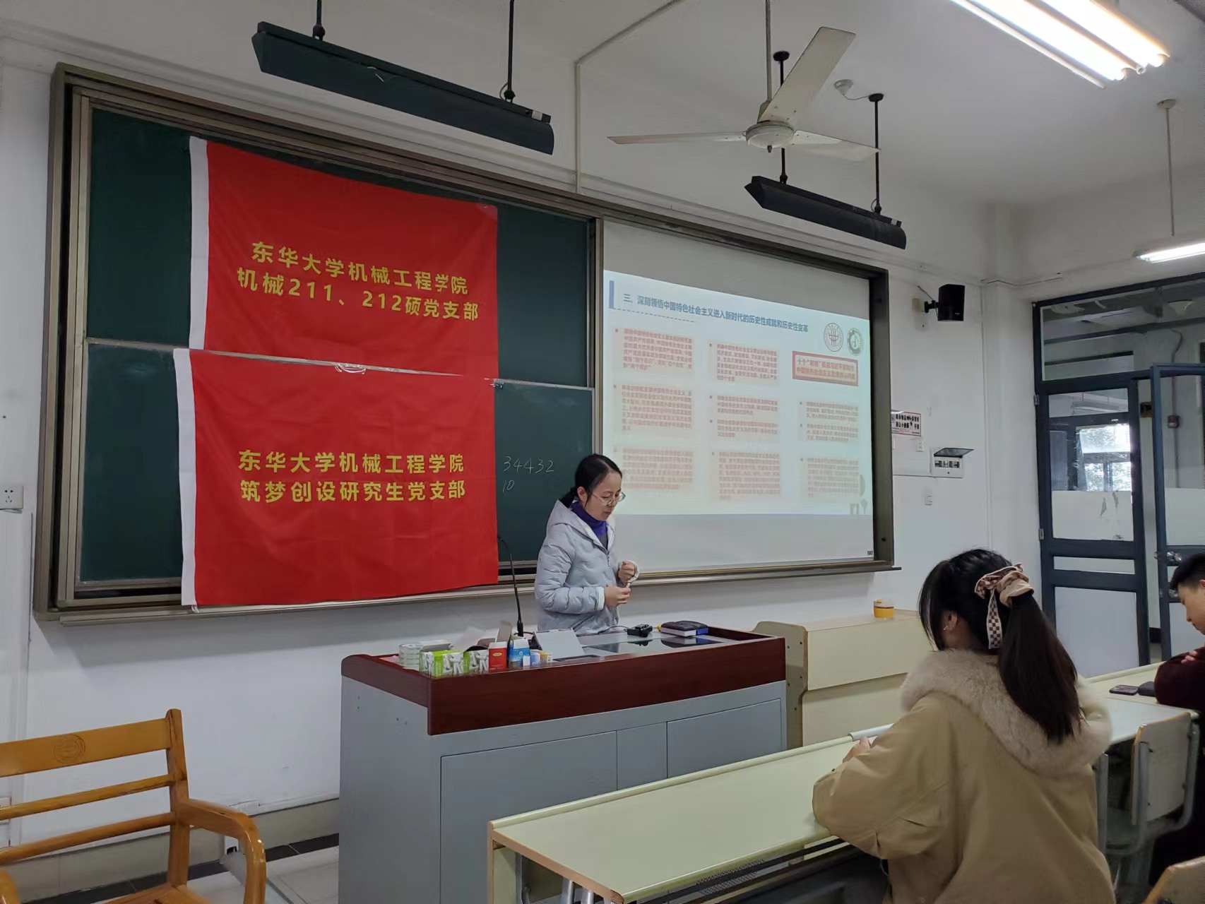 李宁蔚给学生上党课