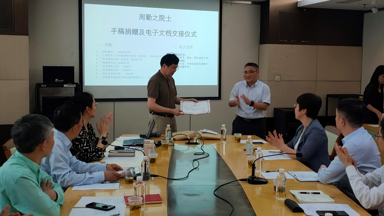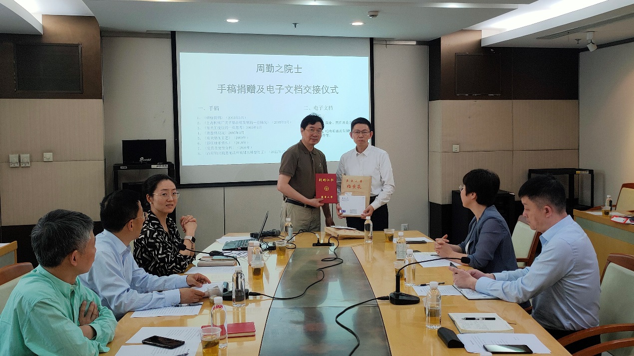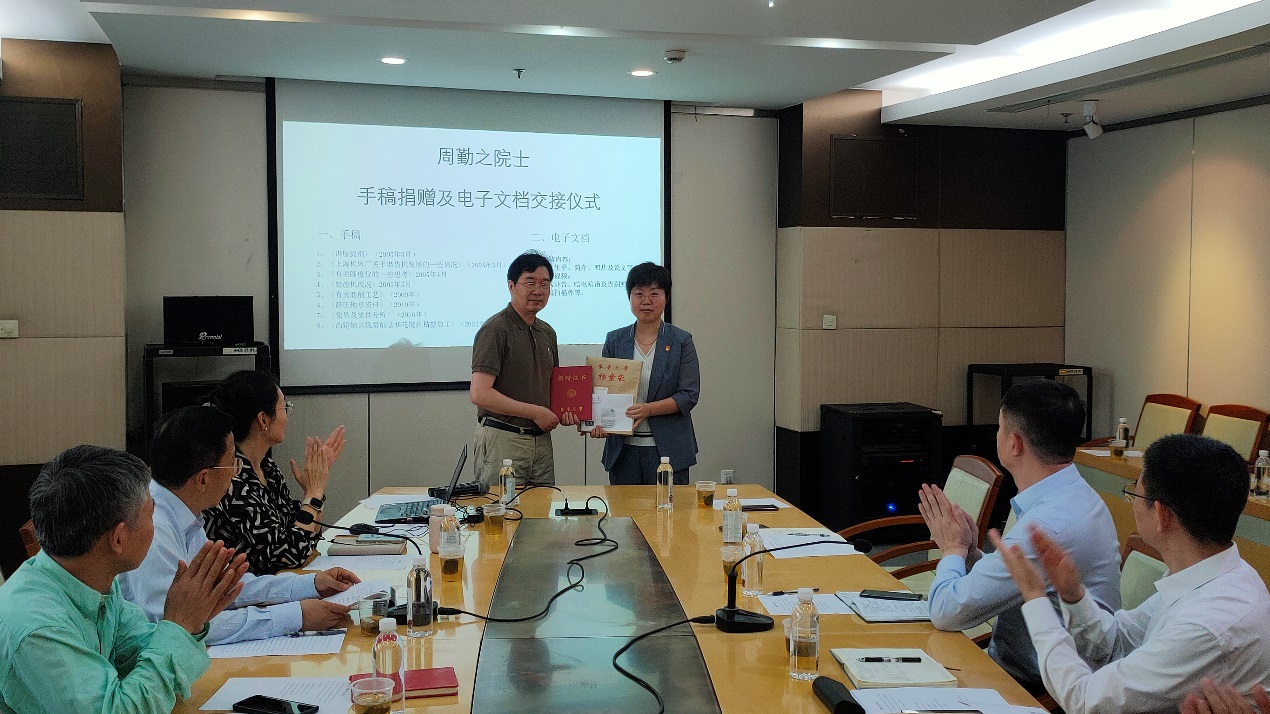周勤之院士生前助理戴惠良副教授受周院士及其家人的委托,向欧乐电影 档案馆捐赠周院士的手稿、书籍等资料。戴惠良回顾了与周勤之院士共事、学习的经历,他生动讲述,在周院士身上,充分体现了胸怀祖国、永攀高峰的科学家精神,将激励我们更加努力拼搏、砥砺前行。