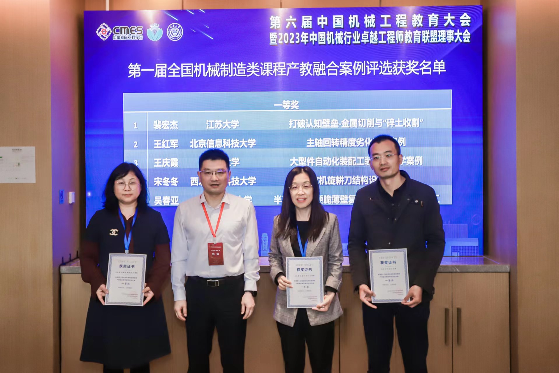 学院高度重视教师教育教学经验交流与学习,积极组织多位教师参与。在本次大会上,欧乐电影机械制造系吴重军老师经过前期的积极准备与教学比赛评审环节,在机械制造类课程青年教师竞赛中荣获一等奖。同时,王庆霞老师和吴重军老师分别荣获第一届全国机械制造类课程产教融合案例一等奖以及二等奖,是所有参赛单位唯一获得二项教学案例奖的申报单位。