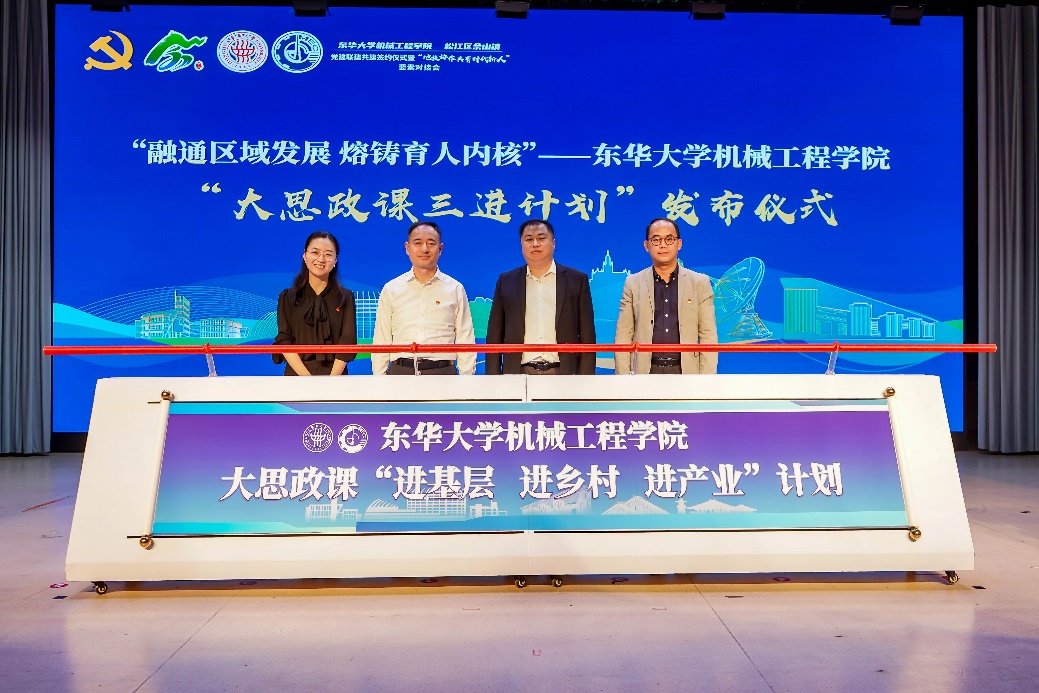 为深入实施“时代新人铸魂工程”,机械学院大思政课“进基层、进乡村、进产业”计划也在此次活动现场正式发布,赵彦明、杨蓉、朱伟杰、宋苏伟共同发布“三进计划”。自2019年6月起,机械学院围绕立德树人根本任务,立足“大格局、大视野、大历史观”系统打造“大课”铸魂育人工程,先后开展了“奋斗的我,奋进东华”毕业大课、“信仰之路,奋斗有我”“四史”大课、“传承雷锋精神,弘扬榜样力量”雷锋精神大课等近20场思政大课,覆盖20000余人次。此次发布的“三进计划”旨在扩其意、强其核、广其域、增其效,让“大思政课”打破空间阻隔、走出学校,到广阔的天地之间,实现思政小课堂与社会大课堂的融合,让学生在田间地头学思践悟、在产业一线学以致用、在社区基层服务人民。