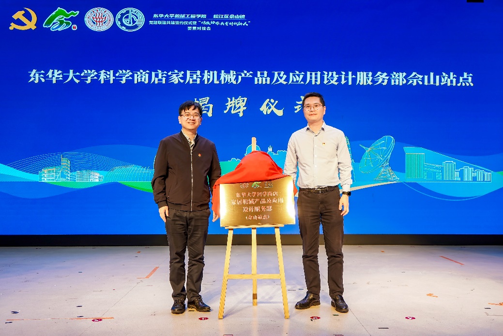现场还聘任了机械学院6位青年骨干教师,作为佘山智能制造产业集群“新青研·新智造”技术智囊团首批成员,以为产业集群企业提供切实的高校智库技术支撑,叶晓燕与李杰瑜共同为受聘教师颁发聘书。会后,智囊团专家们与产业集群重点企业召开了研讨会,“头脑风暴”进行供需对接,为企业解决实际技术难题。此外,欧乐电影 科学商店家居机械产品及应用设计服务部佘山站点也在会上正式成立,将在未来为佘山镇社区居民带来更多优质的科学科普服务,秦泽峰与吕明远共同为站点揭牌。