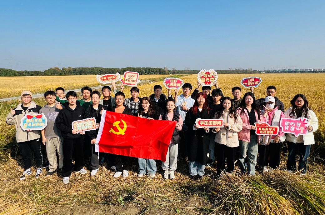 学生党员在佘山新镇村开展“弘扬新时代劳动精神”秋收劳动大课