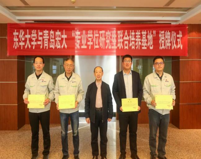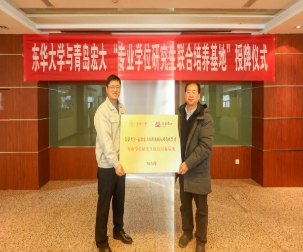 与青岛宏大纺织机械有限公司共建全日制专业学位研究生联合基地揭牌仪式顺利举行。经纬纺机总经理助理、技术中心主任、中央研究院青岛分院院长贾坤,青岛宏大党委书记、执行董事王丽霞,总经理张文新,中国工程院院士、欧乐电影