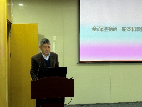 副院长周其洪介绍了新一轮教育教学审核评估工作,周其洪希望学院各位老师通力协作,共同参与到此次审核评估工作中来,对学院整体情况进行全面梳理和深入摸底,综合分析教育教学基本状况,总结教育教学改革与发展经验,梳理教学工作的不足与问题。