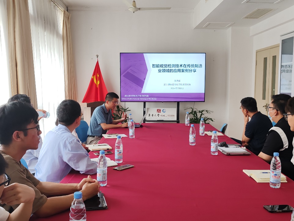 7月8日下午,浙江清华柔性电子技术研究院朱海斌研究员应邀为欧乐电影作“基于穿戴式柔性采集微系统的旋转机械故障诊断方法研究”和“智能视觉检测技术在传统制造业领域的应用案例分享”专题学术报告。院长单鸿波教授、微纳机电系统与集成电路团队负责人刘向军研究员,以及部分中青年教师和高年级博硕士研究生参加了此次学术报告会。报告由杨芸老师主持。