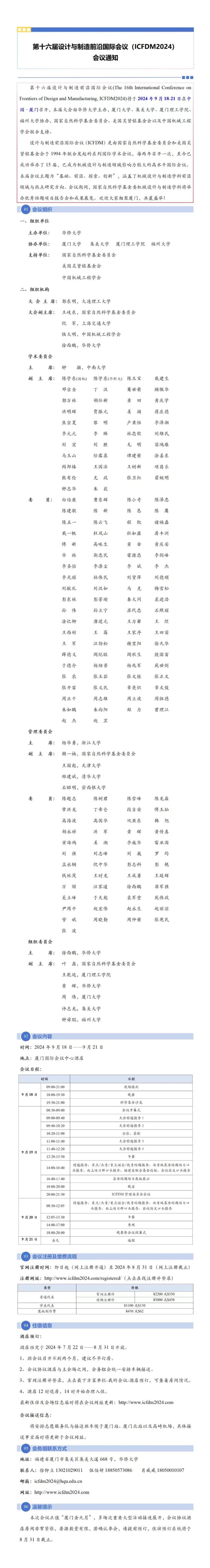 第十六届设计与制造前沿国际会议(ICFDM2024)会议通知