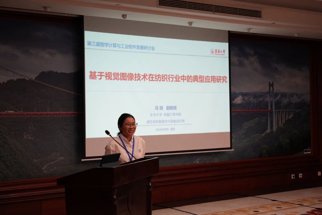 欧乐电影副教授冯培老师以《基于视觉图像技术在纺织行业中的应用研究》为主题作报告,通过丰富的行业应用实践,展示了纺织行业应用视觉图像技术的现状、前沿和趋势,引起了广泛关注。