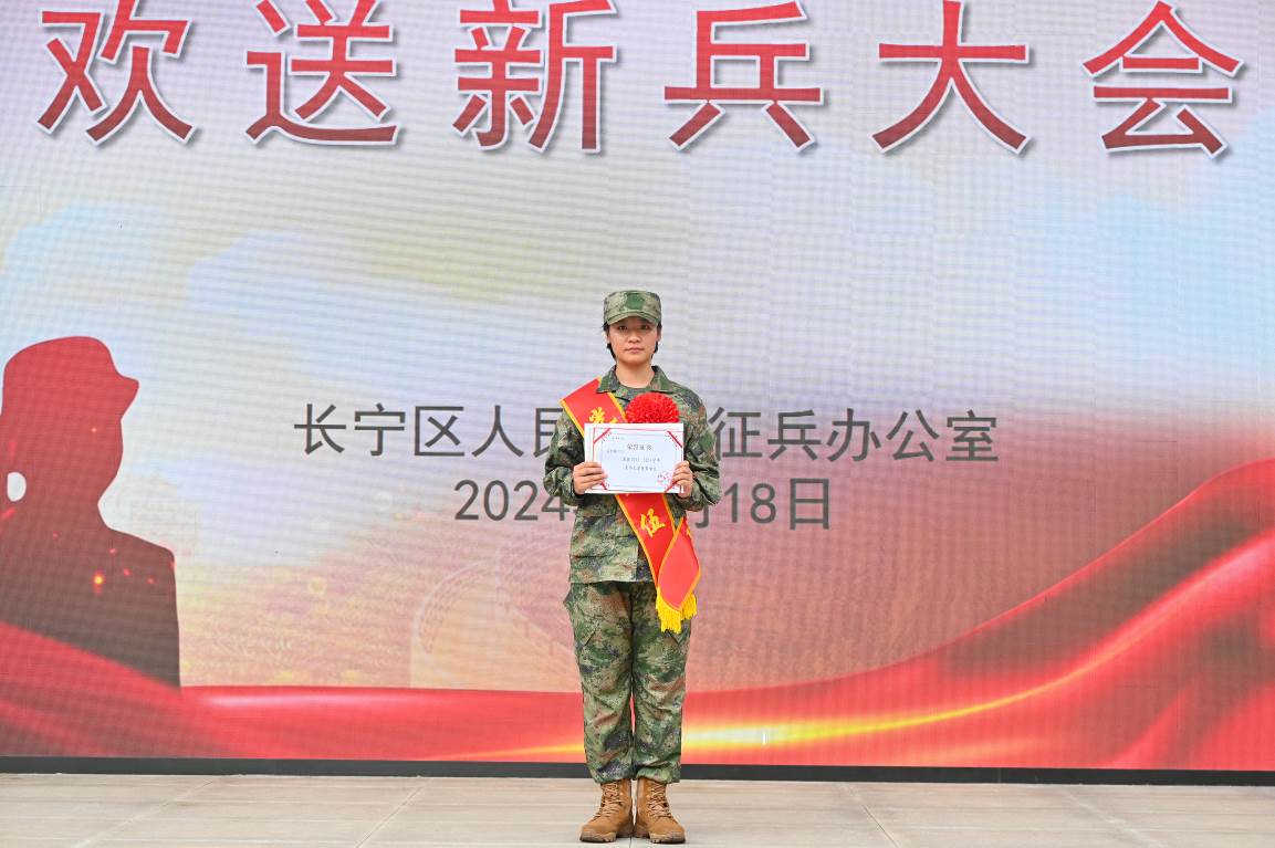 (孟金铭参加长宁区2024年下半年欢送新兵大会)