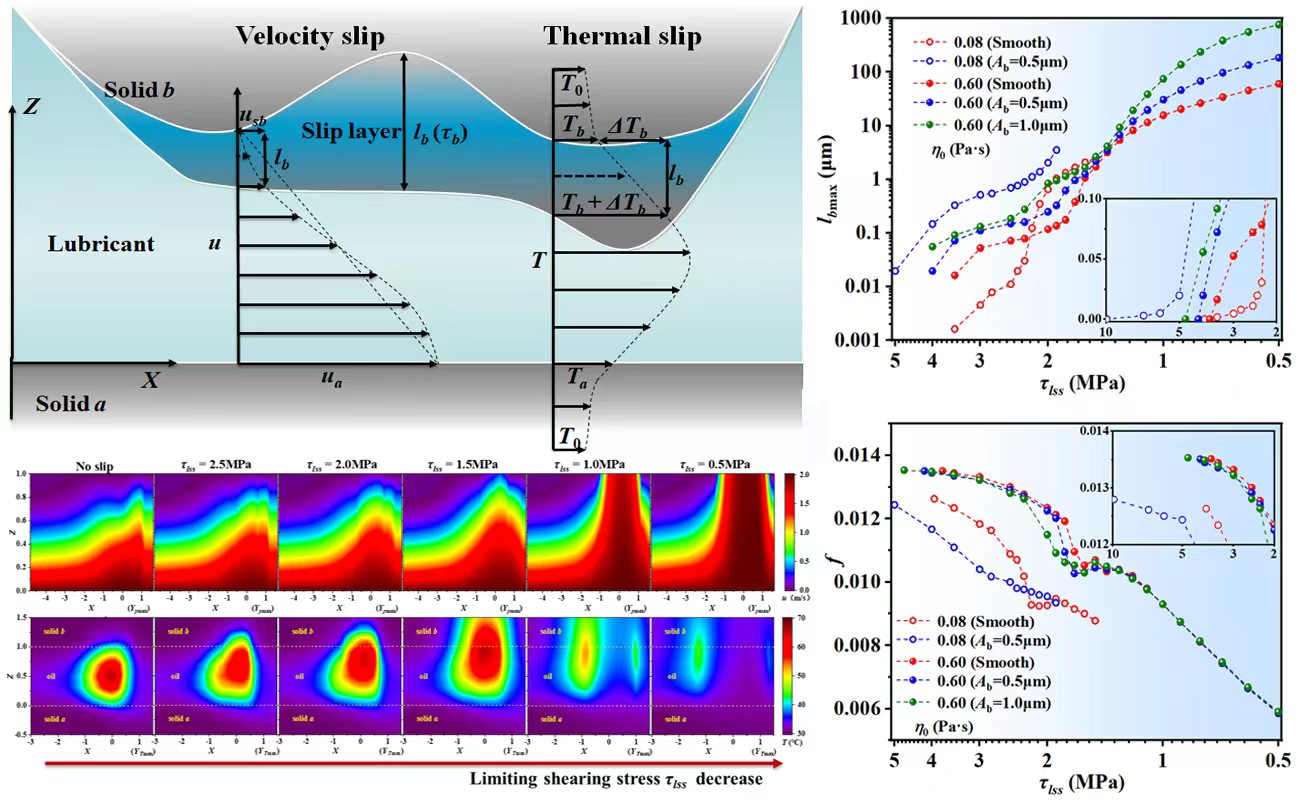 该研究开展以来取得了一系列科研成果。其中线性边界滑移理论部分以“界面速度与温度滑移对有限长线接触纯滑动热弹流接触的影响”为题发表于摩擦学学报,文章链接://tribology.com.cn/cn/article/doi/10.16078/j.tribology.2023110;非线性边界滑移理论部分以“Effect of boundary slips on thermal EHL in simple sliding finite line contact considering limiting shearing stress”为题发表于国际期刊Friction(IF:6.3),文章链接://www.sciopen.com/article/10.26599/FRICT.2025.9440944;边界滑移实验部分以“Measurement of slip length and friction reduction: An experimental study about boundary slip using omniphobic and 2D coatings”为题发表于国际期刊Tribology International(IF:6.1),文章链接://www.sciencedirect.com/science/article/pii/S0301679X24010314。以上成果欧乐电影 均为第一单位,欧乐电影博士研究生张明宇为第一作者,王静教授为通讯作者。该研究获得国家自然科学基金项目(51875298)、山东省自然科学基金项目(ZR2019MEE040)和中央高校基本科研业务费专项资金、欧乐电影 研究生创新基金项目(CUSF-DH-D-2023033)资助。