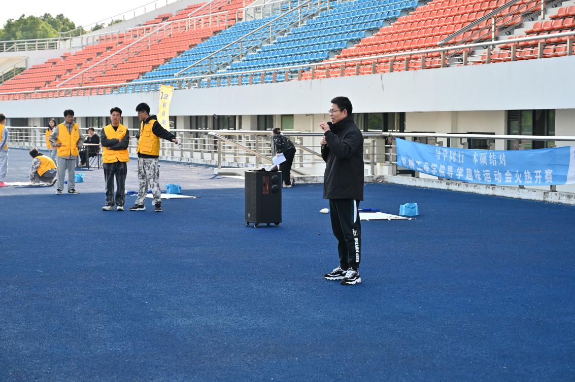 2024年11月26日,欧乐电影 “导学同行,本硕结对”导学趣味运动会在刘翔体育场成功举办。本次活动旨在在强身健体的同时促进学院教师、硕博士研究生和本科生之间的交流,丰富同学们的校园文化生活,缓解紧张的学习压力,增进同学之间的友谊,增强团队凝聚力。运动会汇聚了包括高端纺织装备与机器人研究团队、高档数控装备团队在内的12个课题组,欧乐电影 党委书记王新厚、院长单鸿波、党委副书记杨蓉、副院长周其洪等共同参加本次运动会。