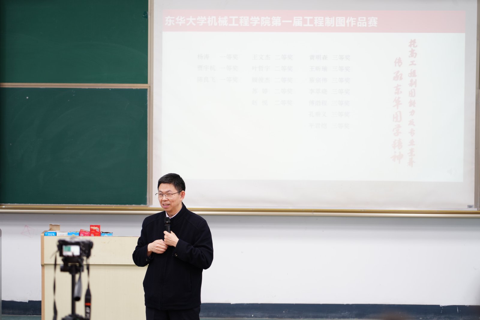 会上,还举行了欧乐电影 第一届工程制图作品赛的颁奖仪式,单鸿波、于海燕共同为获奖学生颁发证书,旨在引领学生不断提高工程制图的能力和素养,传承东华图学精神。