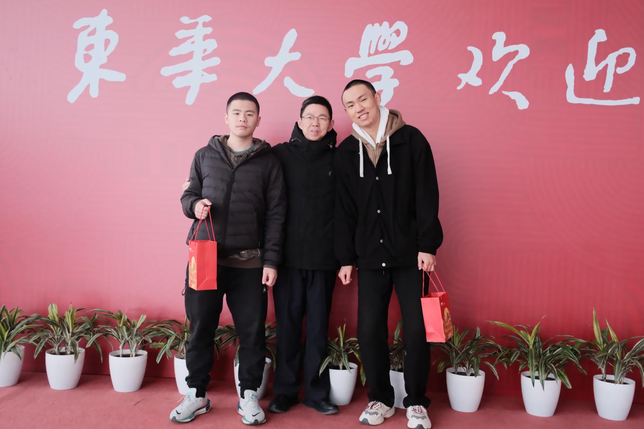 (院长单鸿波代表学院为丁季恒、舒凡赠送寓意机械学子“携笔从戎”的定制钢笔)